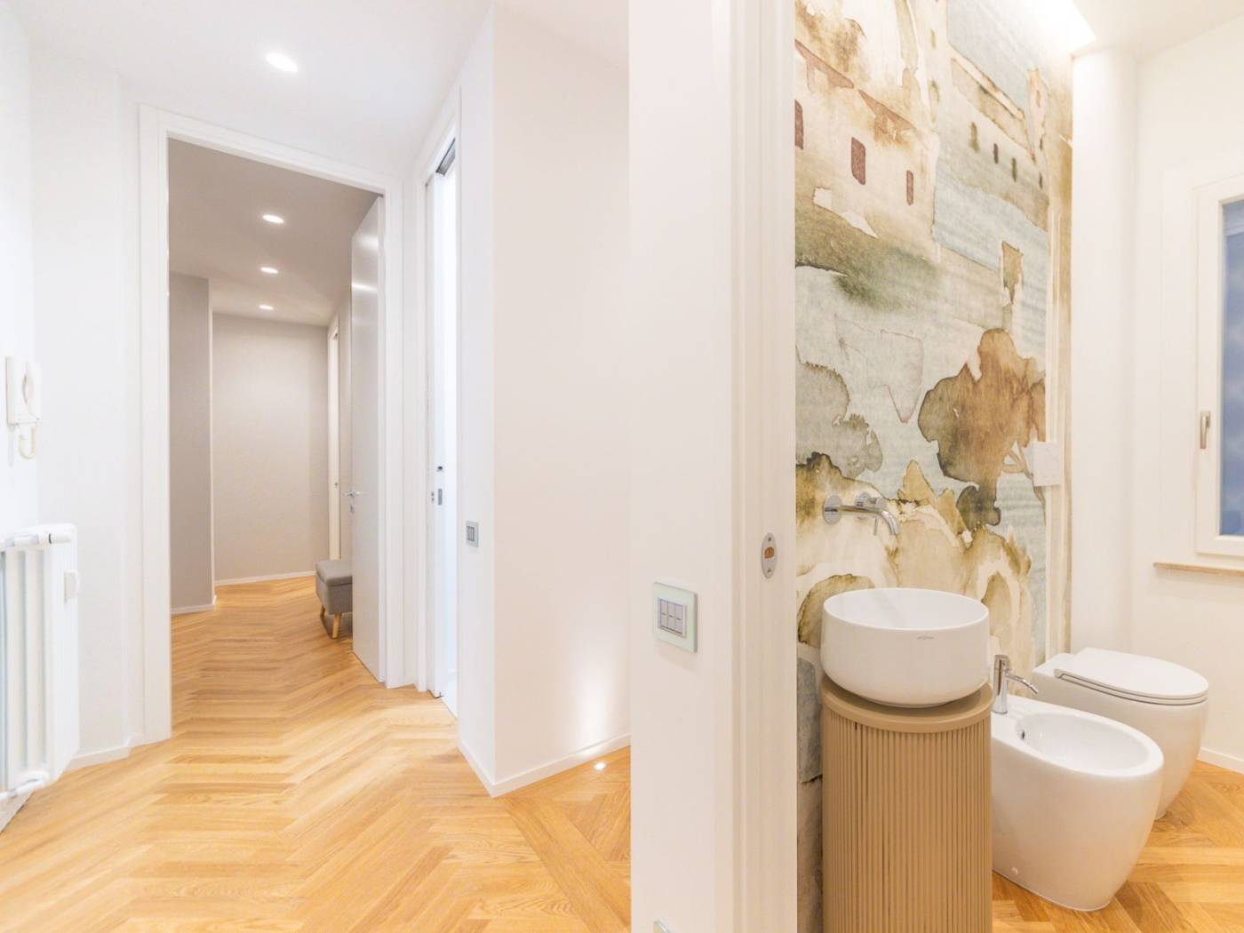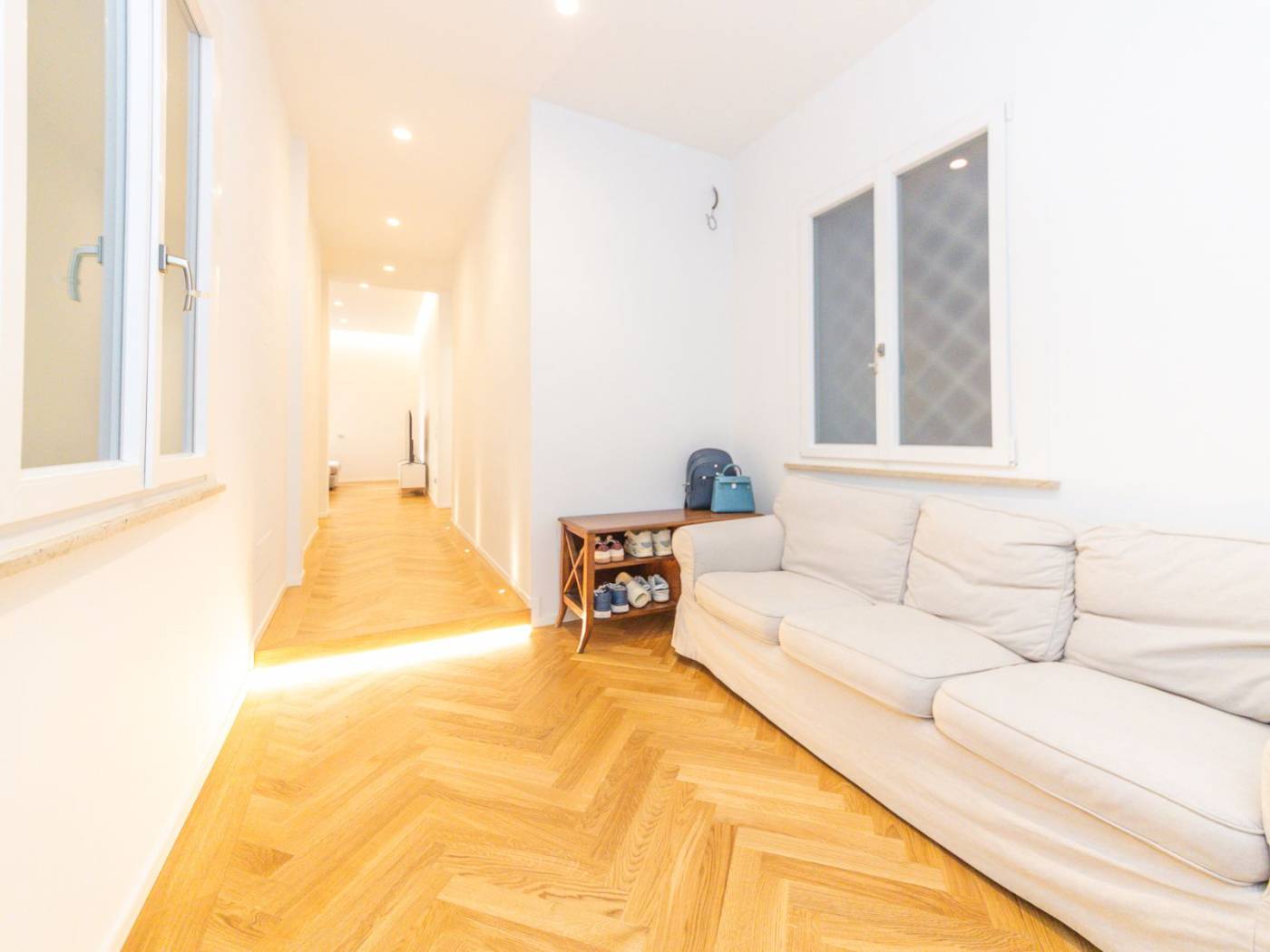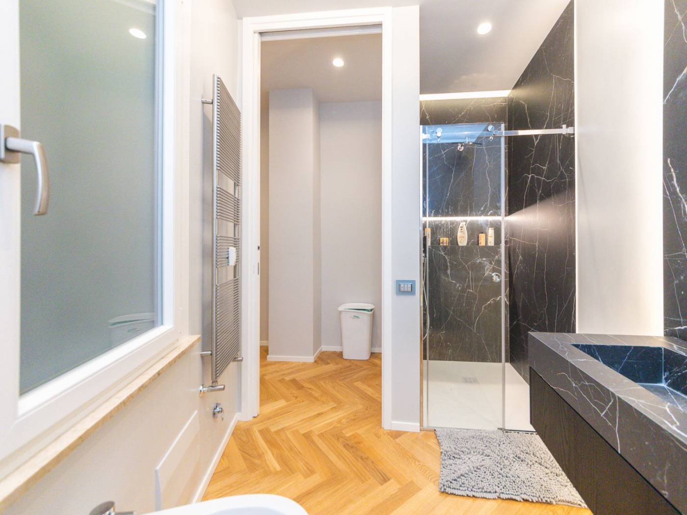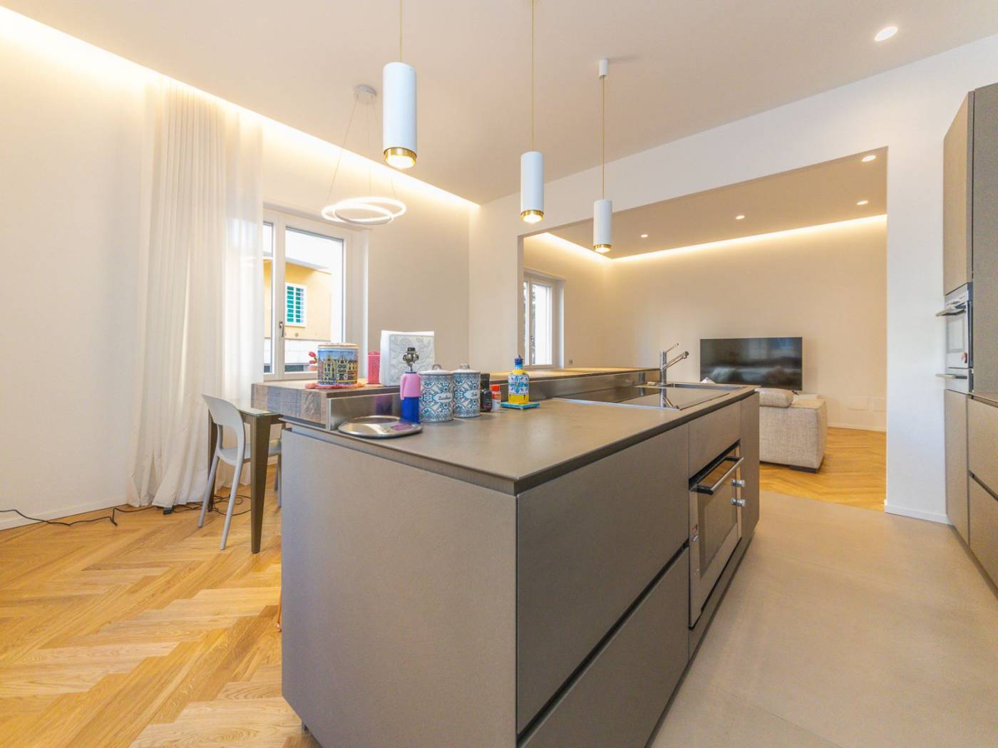 La ristrutturazione, realizzata con attenzione ai minimi dettagli, ha saputo valorizzare ogni angolo dell'immobile, rendendolo unico e raffinato. Tra gli elementi distintivi, spiccano il sistema domotico integrato per il controllo delle persiane e dell'illuminazione a LED, il riscaldamento centralizzato potenziato, e gli infissi termici che garantiscono efficienza energetica e massimo isolamento.