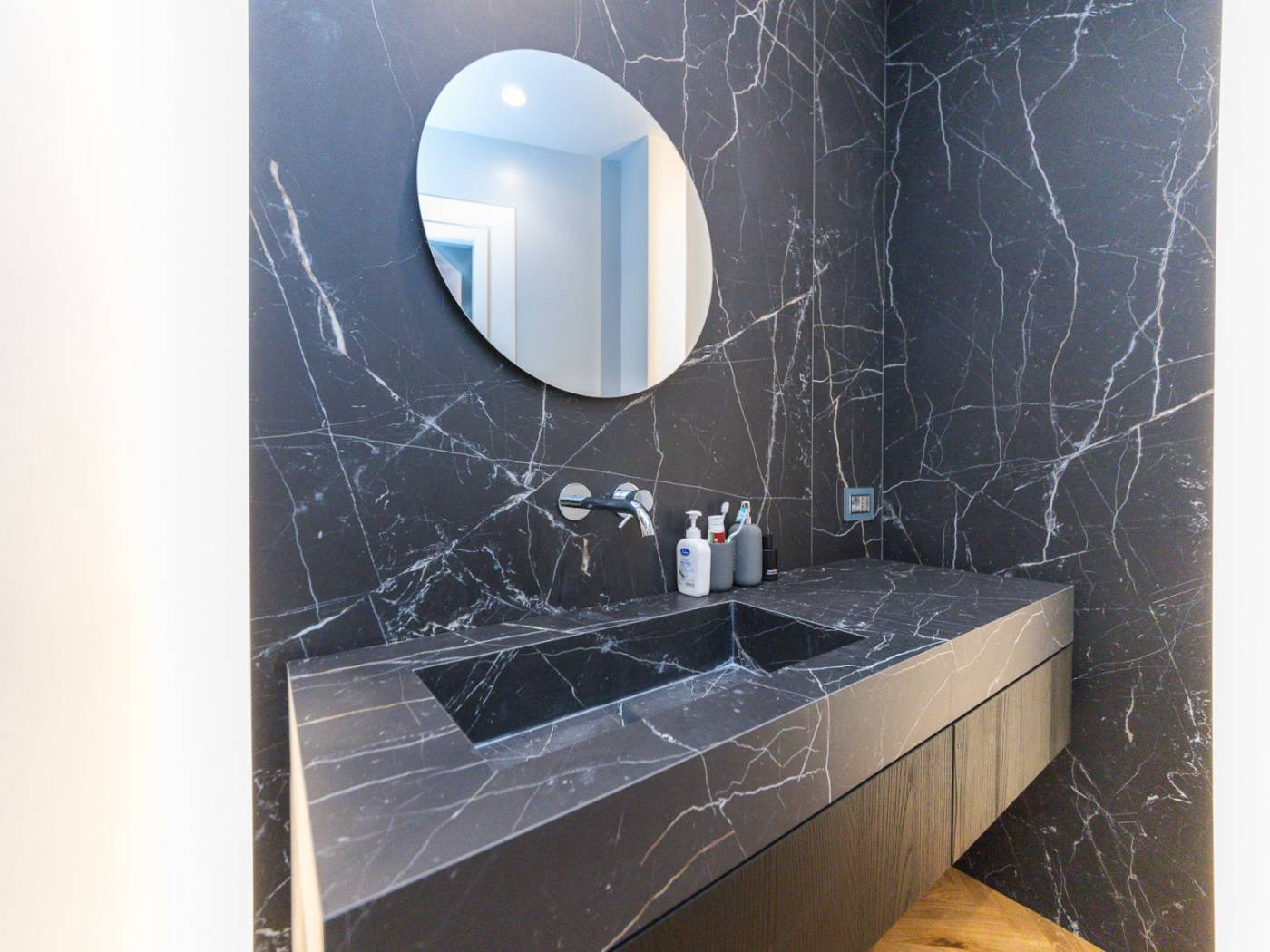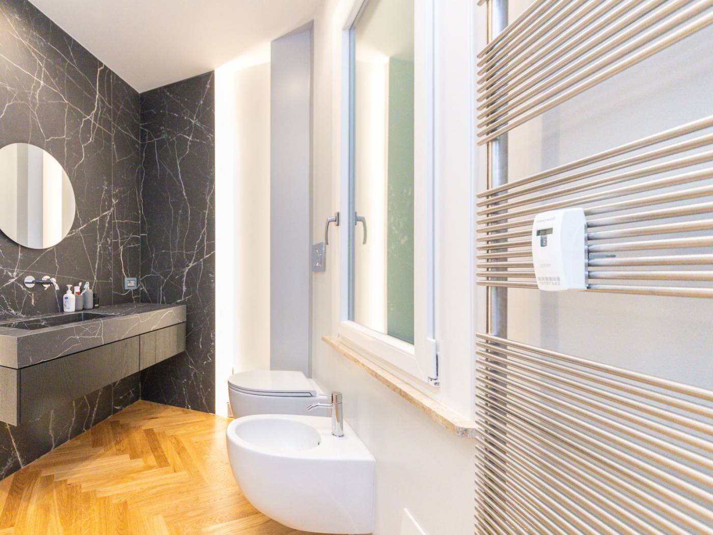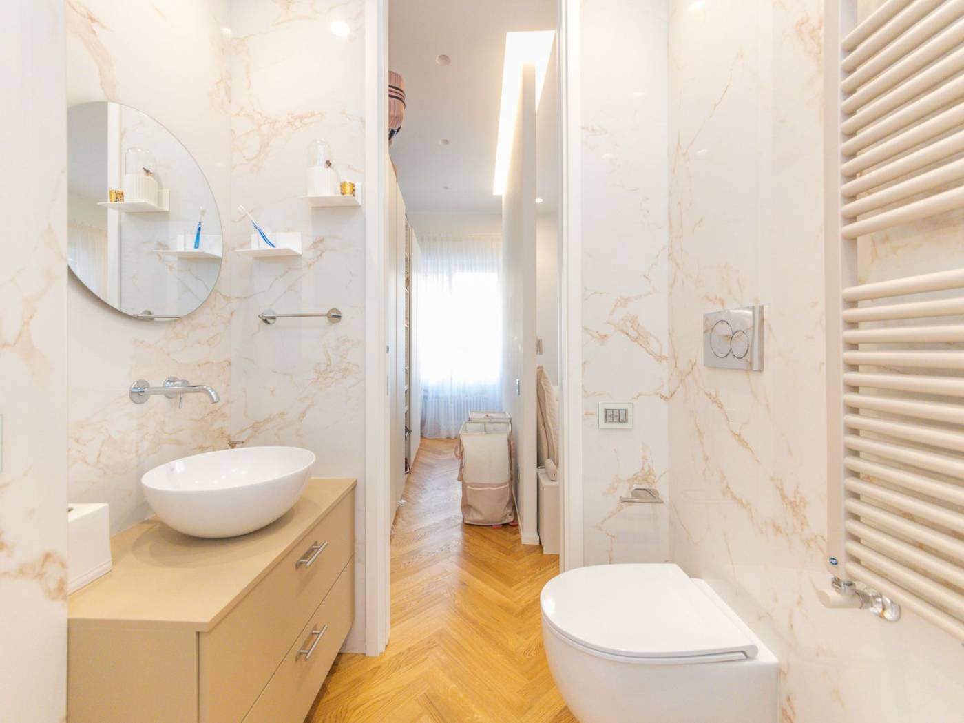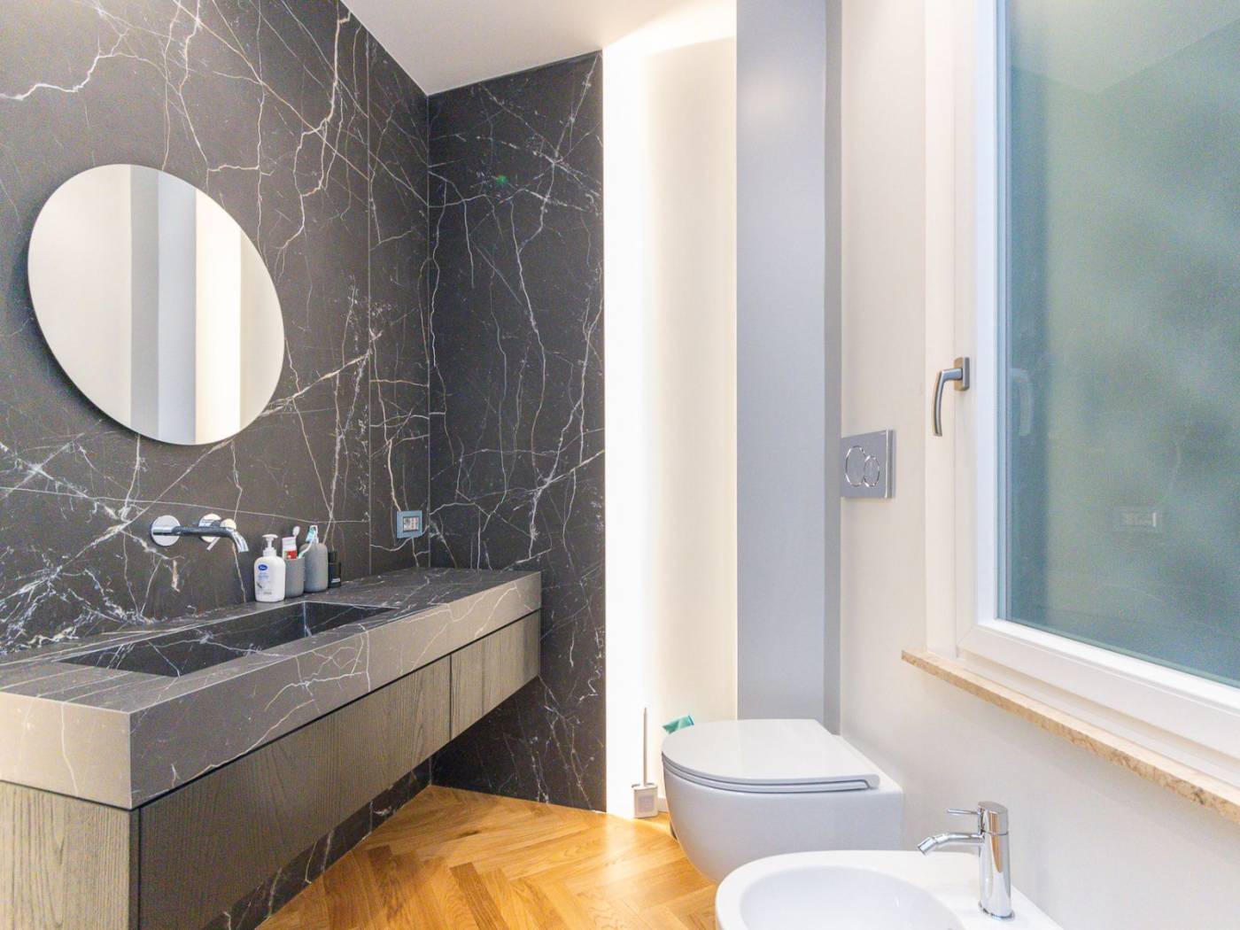 La ristrutturazione, realizzata con attenzione ai minimi dettagli, ha saputo valorizzare ogni angolo dell'immobile, rendendolo unico e raffinato. Tra gli elementi distintivi, spiccano il sistema domotico integrato per il controllo delle persiane e dell'illuminazione a LED, il riscaldamento centralizzato potenziato, e gli infissi termici che garantiscono efficienza energetica e massimo isolamento.